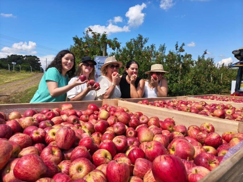 Na parte da tarde, os participantes seguiram para a colheita da maçã nos pomares da Empresa Fischer, vivenciando na prática o símbolo da abertura da safra. Após a colheita, um grupo de jornalistas visitou a fábrica e conheceu todo processo produtivo da empresa.